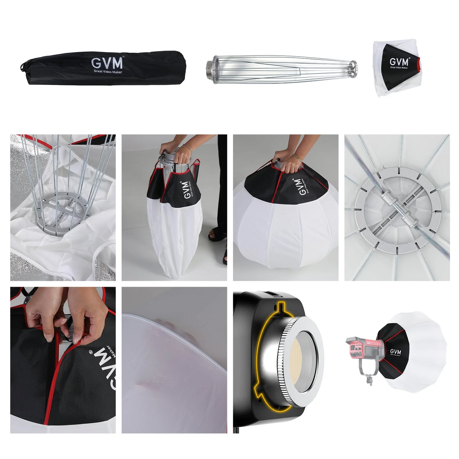 - 【Bowens Mount Compatibility】GVM Lantern Softbox is compatible with all Bowens Mount Lights, compatible with PRO-SD200B/ SD300B/SD400B/SD500B/SD650B/ and Other Bowens Mount Light, for recording, portraits, product photography, fashion photography